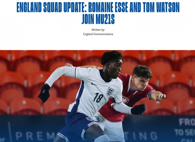 官方:英格兰U21补招埃塞、汤姆-沃特森,麦利因伤退出