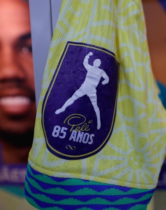 巴西队官方晒出特别版球衣照,并写道:今日,巴西国家队将身着印有特别徽章的球服登场,纪念球王贝利85岁诞辰。