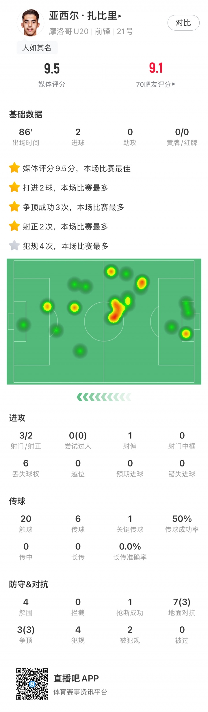 10月20日讯 世青赛决赛,摩洛哥2-0击败阿根廷,亚西尔·扎比里凌空卧射+任意球双响,本届世青赛打入5球。