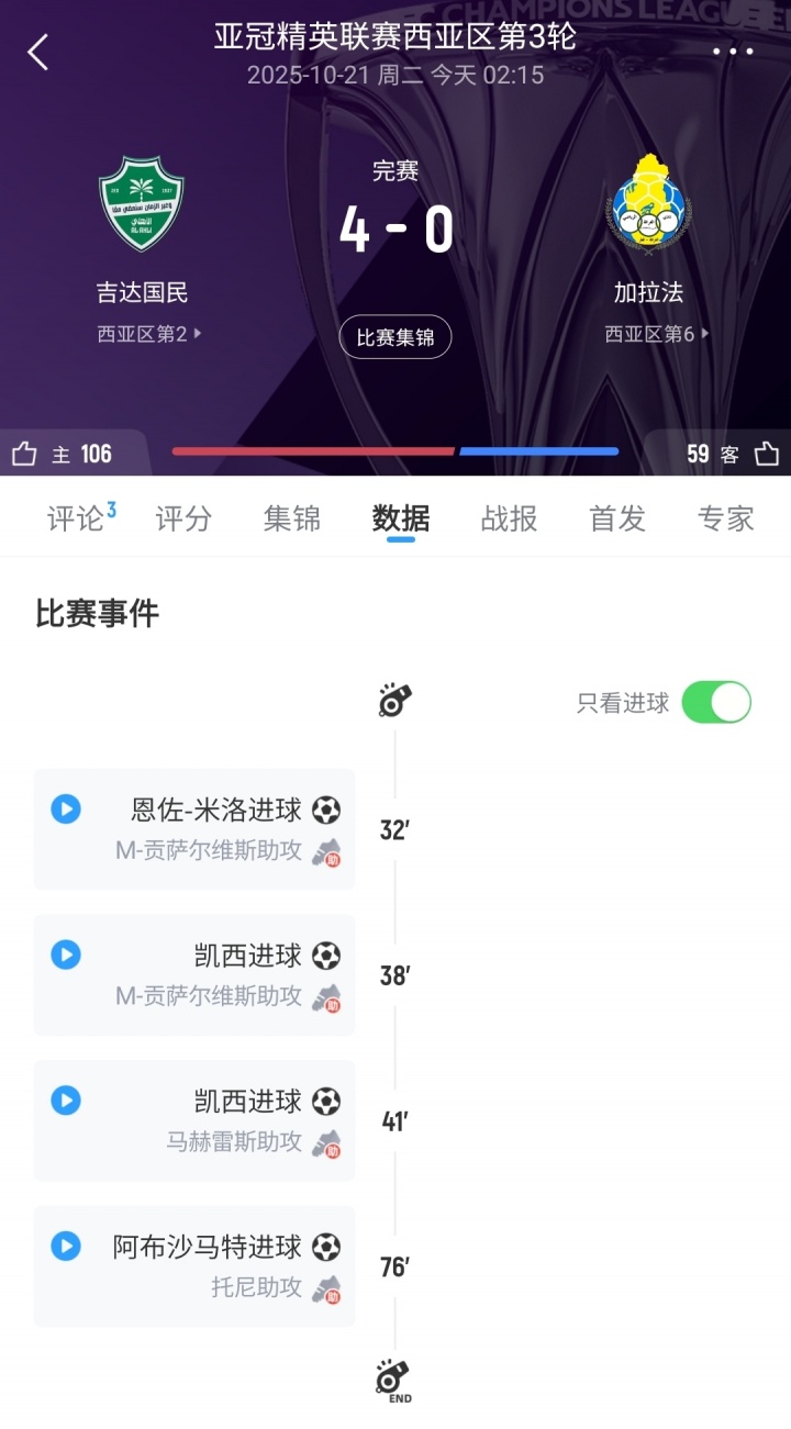 10月21日讯 亚冠精英联赛西亚区第3轮,吉达国民4-0大胜加拉法,本场比赛由马宁领衔的中国裁判组执法。