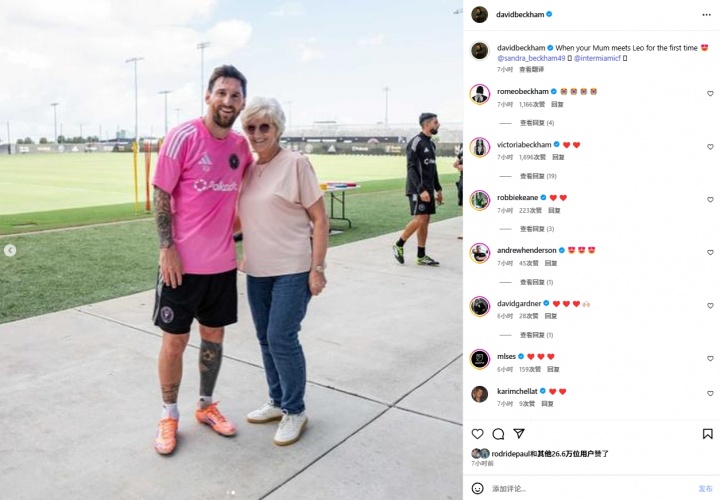 贝克汉姆晒出母亲与梅西合照并写道:当你的母亲第一次见到梅西时。