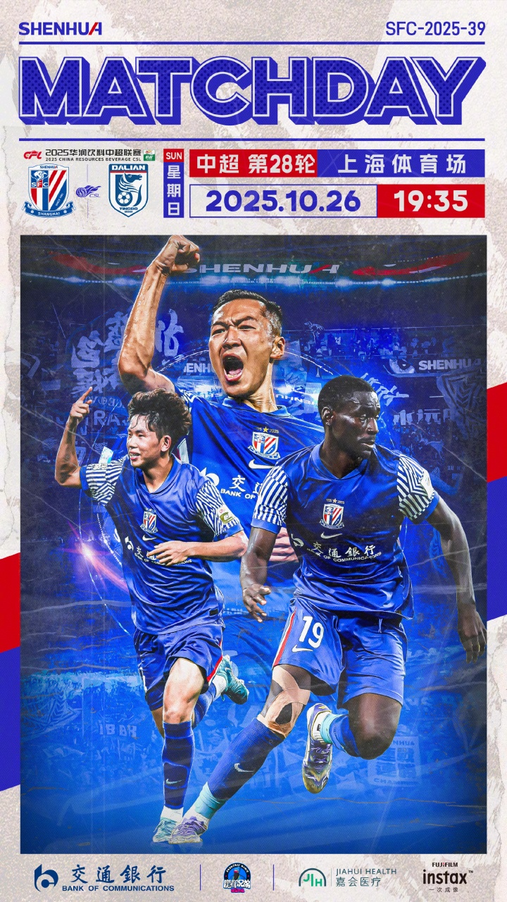 10月26日讯 北京时间19点35分,中超第28轮,上海申花主场迎战大连英博,赛前双方公布首发。高天意、李可、阿苏埃先发,刘祝润、朱鹏宇出战,申花主力中卫蒋圣龙因四黄停赛。