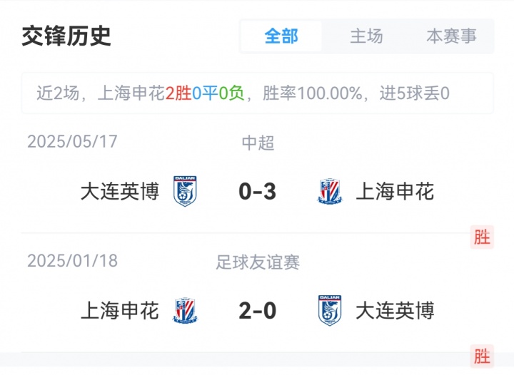 上海申花17胜6平4负积57分,排名中超第3;大连英博9胜7平11负积34分,排名中超第10。