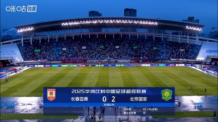 半场-亚泰0-2国安 塞鸟弑旧主法比奥失点后重罚命中,卡米洛染黄