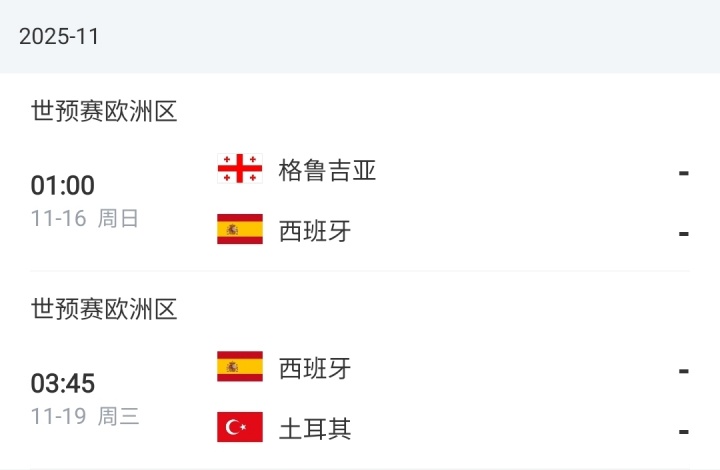 西班牙11月赛程↓