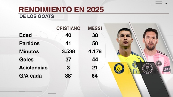 梅罗今年数据:梅西50场44球21助,C罗41场37球3助
