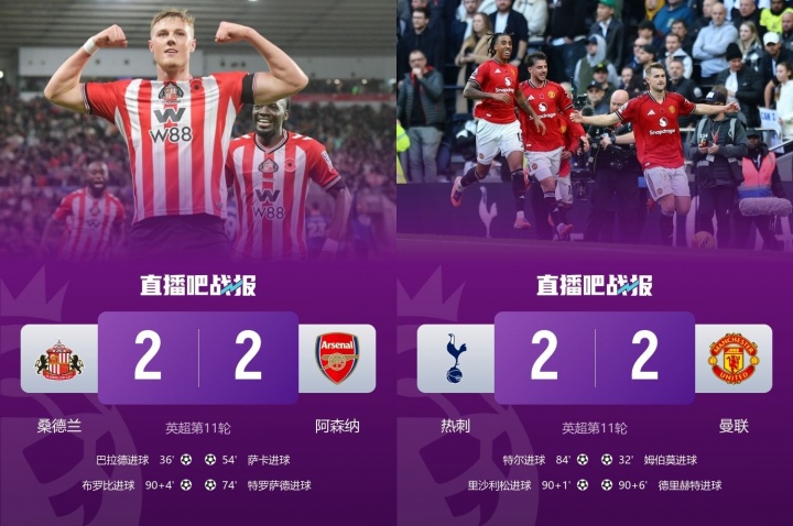 11月09日讯 英超第11轮昨晚结束多场对决,两场戏剧性的比赛让昨夜的实时积分榜变换莫测。