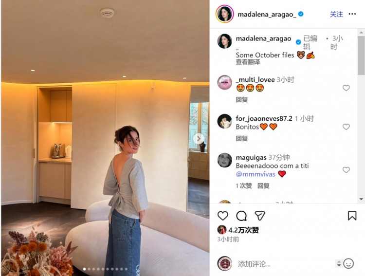 玛达莱娜社媒晒出多张照片,包括与若昂-内维斯的合照,配文:“一些10月份的照片。”